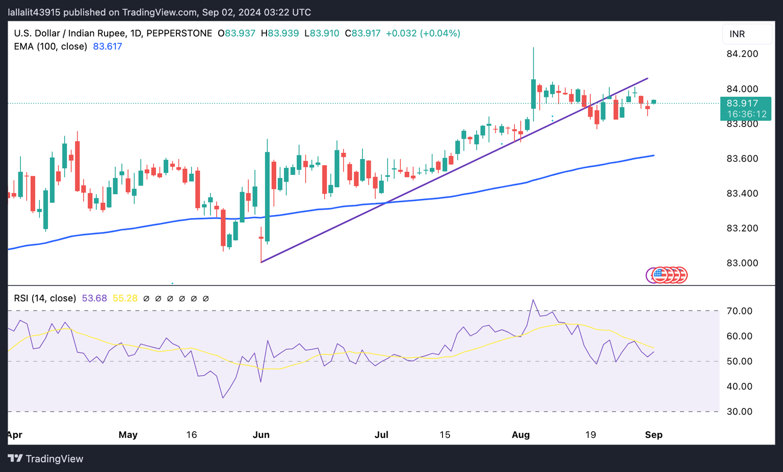 La barrera crucial al alza para el USD/INR se encuentra en la cifra redonda de 84.00. Las ganancias extendidas atraerán a algunos compradores a 84.50.