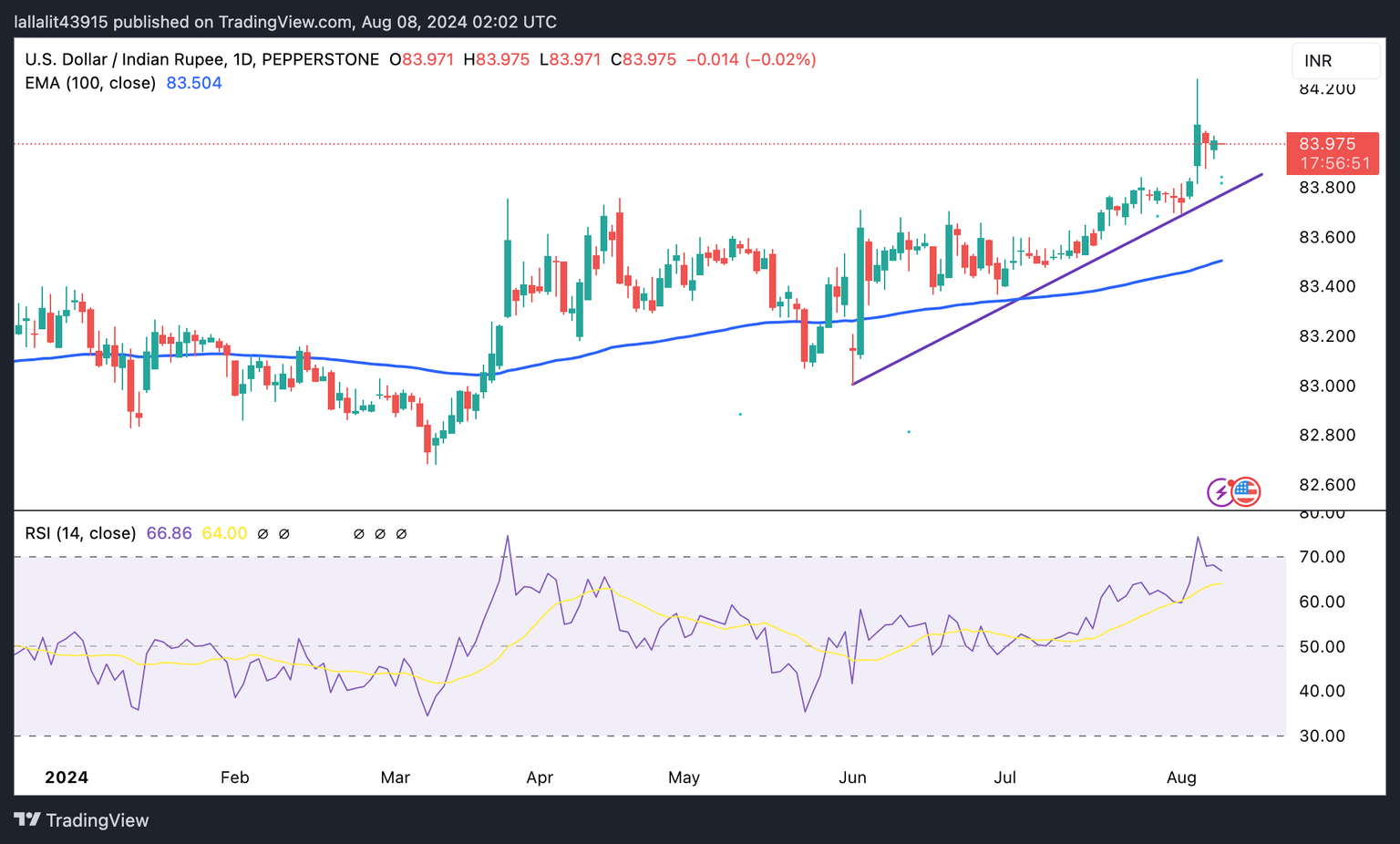 Análisis Técnico: La perspectiva positiva del USD/INR se mantiene intacta