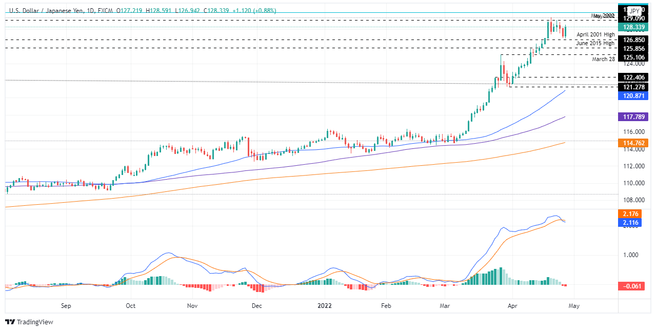 Mientras tanto, los alcistas del dólar recuperaron el control del par, como lo muestra la acción del precio durante el día. En la sesión asiática, el USD/JPY abrió cerca de los mínimos del martes, alrededor de 127.25, y descendió hacia 127.00 debido a un sentimiento moderado. Sin embargo, el par se recuperó y subió más de 150 pips, registrando un máximo diario cercano a 128,50.