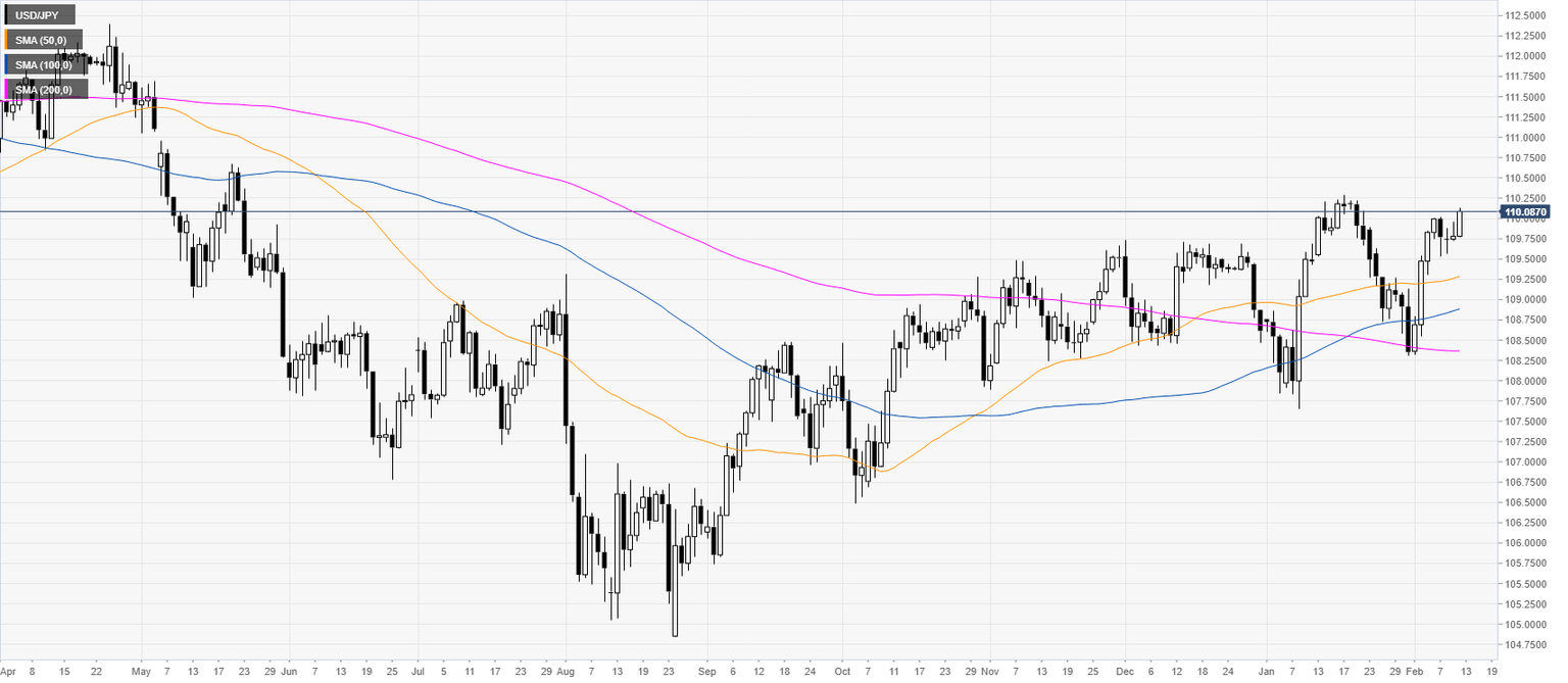 - El USD/JPY está desafiando el nivel de resistencia en 110.10.