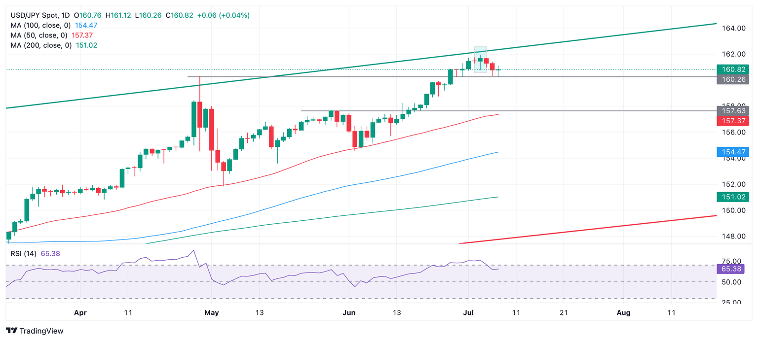 USD/JPY Análisis del Precio: La corrección desde la parte superior del canal encuentra soporte