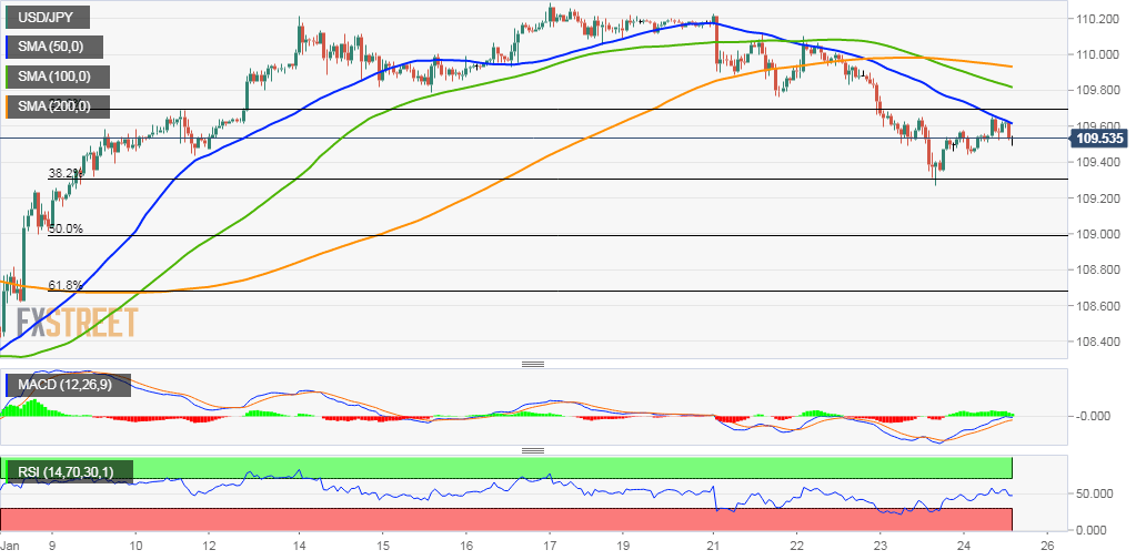 USD/JPY Análisis del precio: La subida se tambalea cerca de la SMA de 50 horas, antes de la resistencia de 109.70
