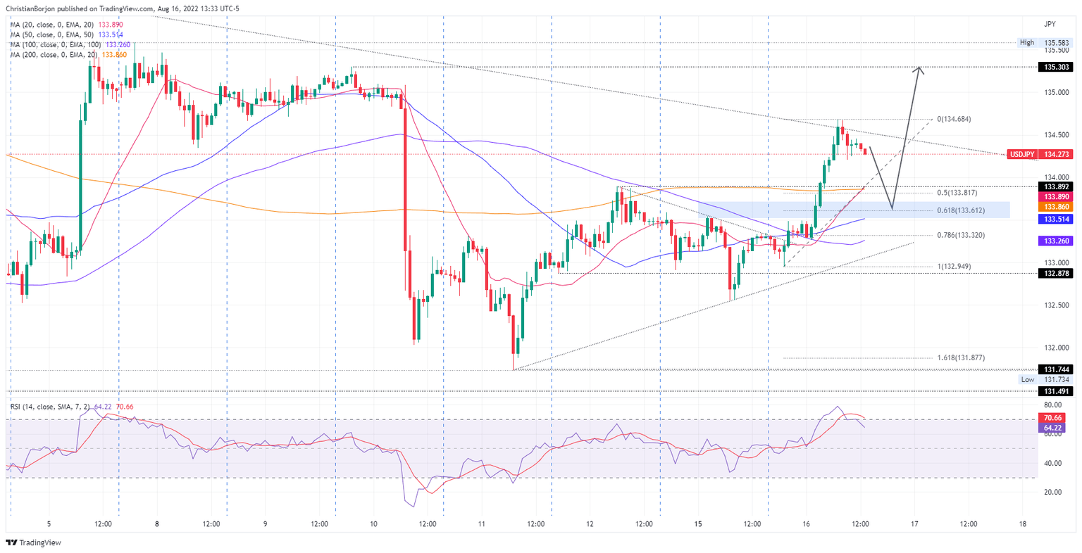 USD/JPY Análisis del Precio: Se dispara y recupera los 134.00, mirando atentamente hacia 135.00