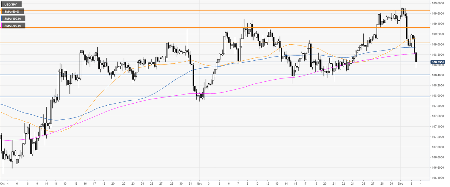 El USD/JPY está descendiendo desde los máximos de noviembre mientras opera por debajo de 109.00 y el promedio móvil simple (DMA) de 200 días en el gráfico diario. La aversión al riesgo está perjudicando al dólar y favoreciendo al yen japonés.