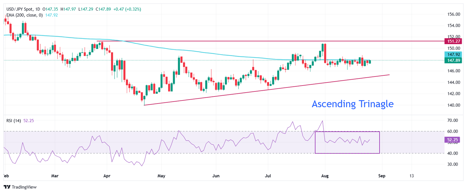 El activo se esfuerza por romper por encima de la Media Móvil Exponencial (EMA) de 200 días, que cotiza alrededor de 147.90.