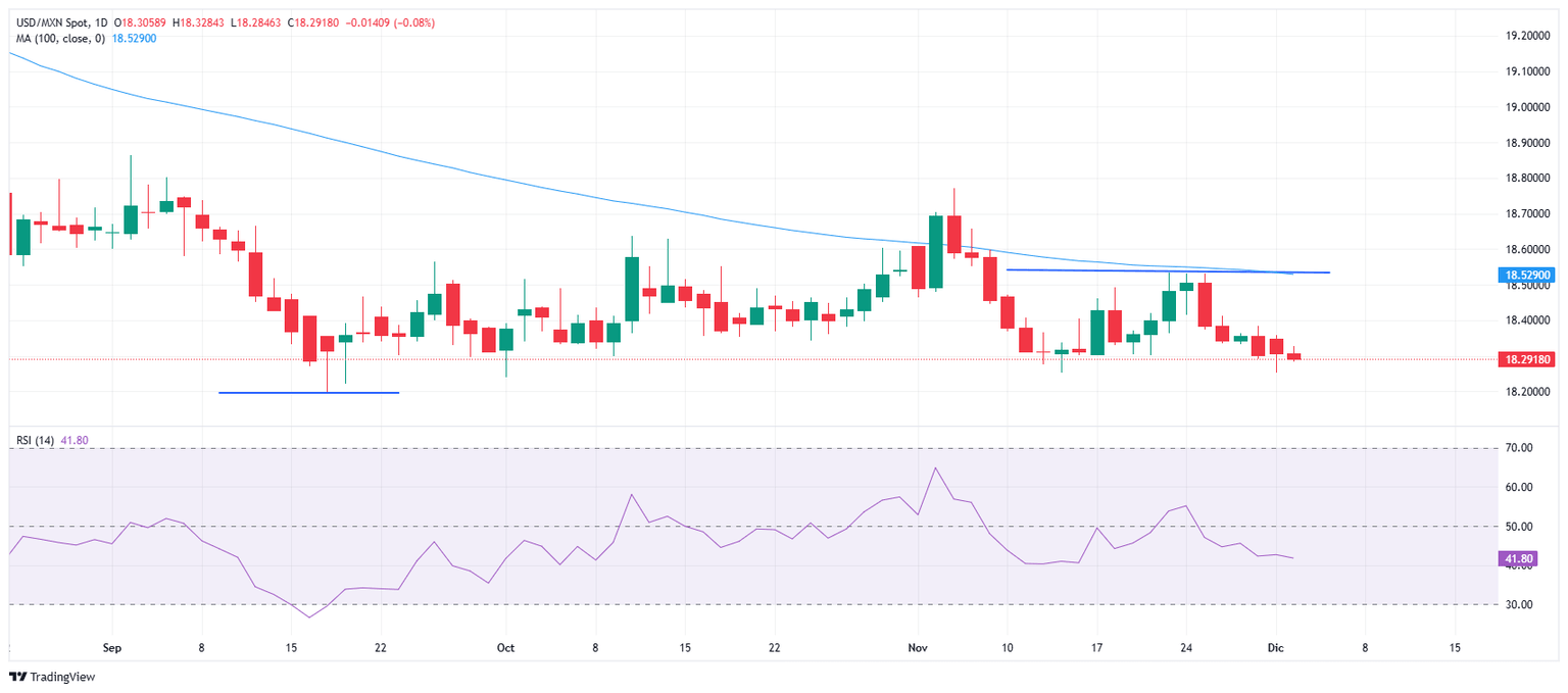 USD/MXN: El Peso mexicano se aprecia ante un Dólar debilitado por el posible recorte de tasas de la Fed en diciembre