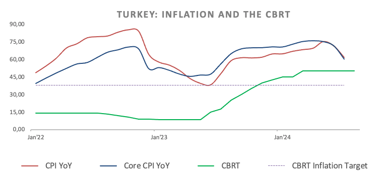 Las pérdidas adicionales en la TRY se aceleraron después de que el banco central turco (CBRT) mantuviera su Tasa Repo a Una Semana en 50,00% por quinto mes consecutivo en su reunión del martes.